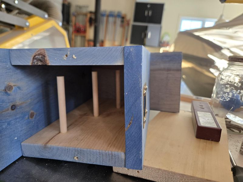 On peut observer les trois perchoirs situés à l’intérieur du dortoir. Ils sont décalés, afin que les oiseaux d’une rangée ne soient pas directement sous ceux au-dessus (pour des raisons évidentes…). |